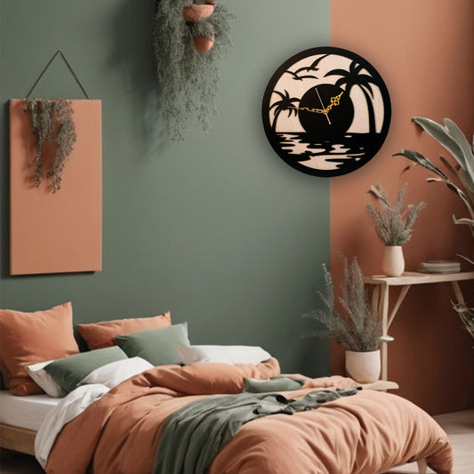 Regular price From Rs. 599.00Regular priceUnit price / perRs. 1,799.00Sale price From Rs. 599.00Bring the beauty of the beach into your home with the Tropical Sunset Wall Clock (AD1126) – a stunning piece of wall décor that captures the charm of palm trees, ocean waves, and a serene sunset. Perfect for adding a touch of nature-inspired elegance, this clock is designed for both style and functionality.